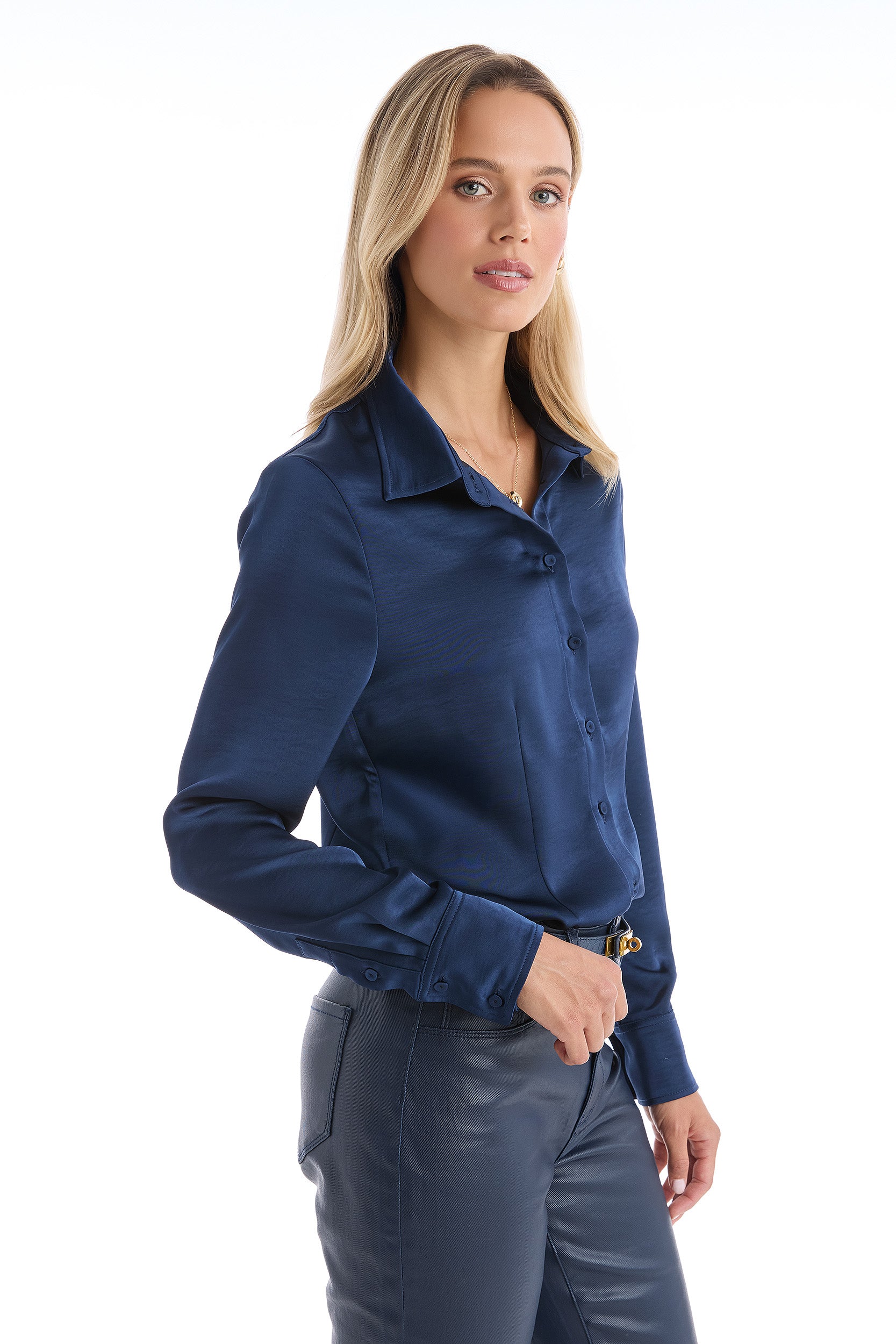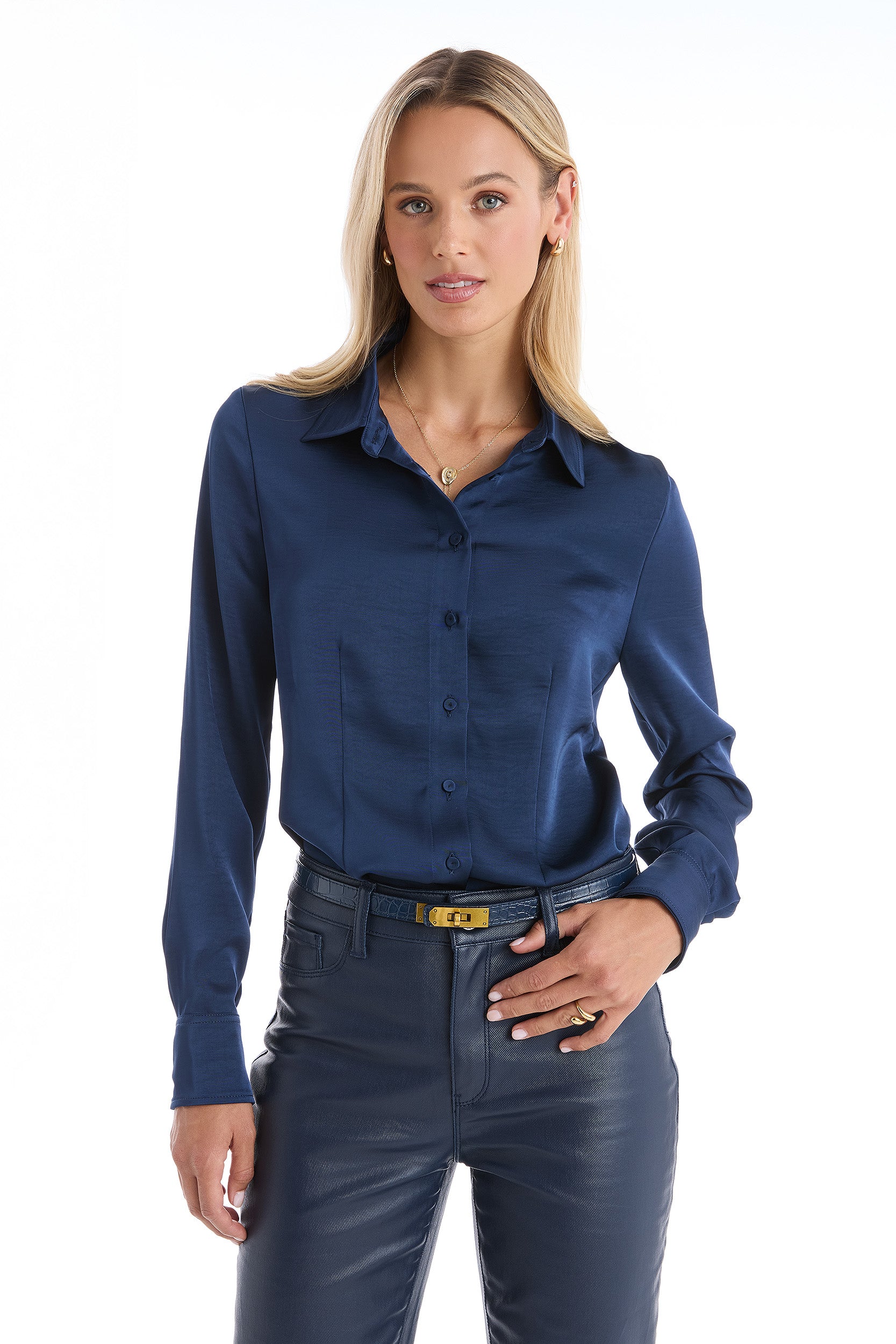 The perfect silk button-down shirt, all the way down to the details. Perfectly tailored with front darting, this slimming and figure-flattering blouse is designed to take on the day in style. With a relaxed fit in the shoulders and arms, this top features elongated button sleeves and a trim collar. Make it yours and enjoy it for seasons to come.