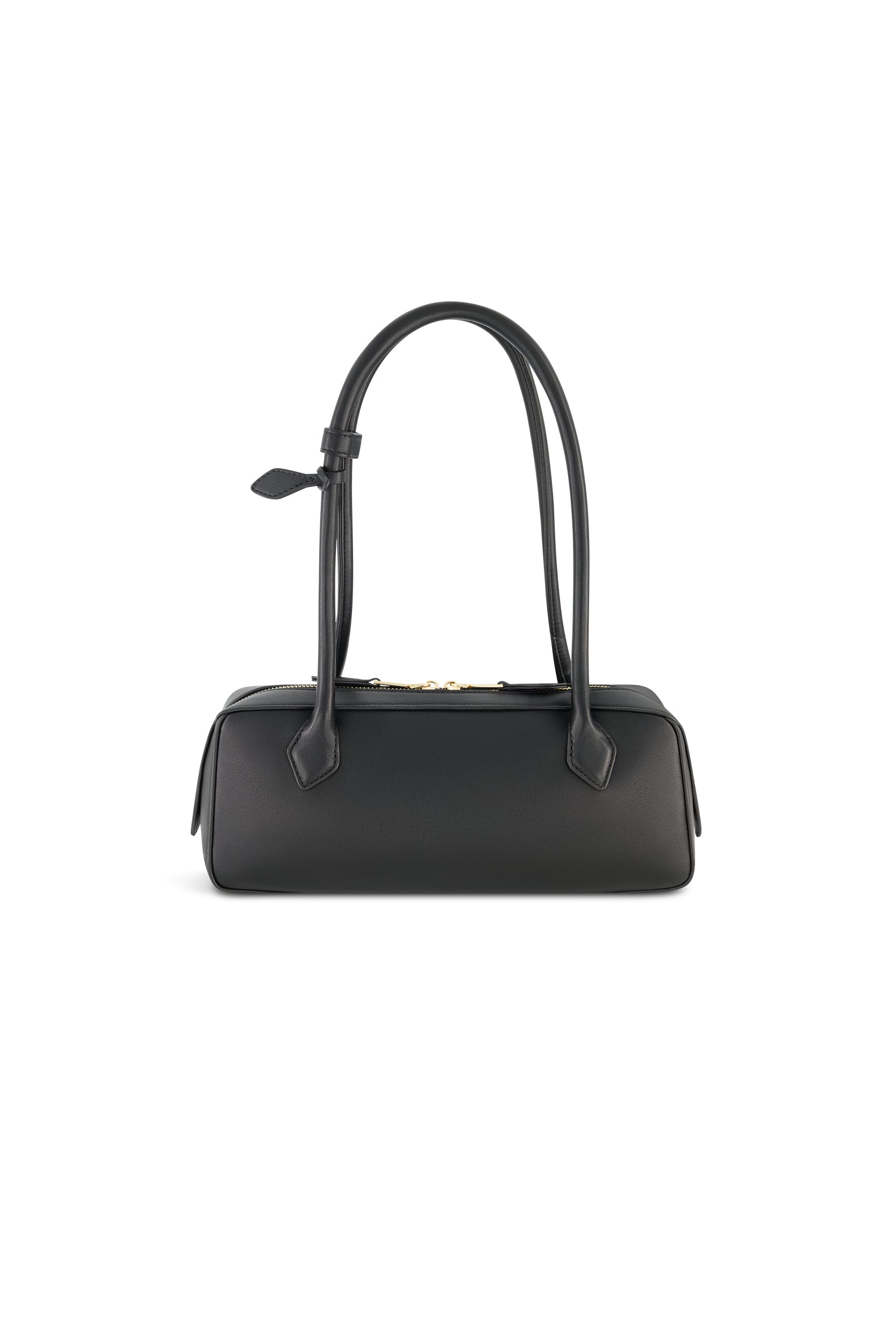 Effortlessly chic and endlessly versatile, this black structured handbag is designed for your everyday carry. Its elongated top handles let you sling it over your shoulder with ease, while the longer width and shorter height create a sleek, modern shape. Finished with gold hardware and a secure top zip closure, it’s a style that’s as polished as it is practical.