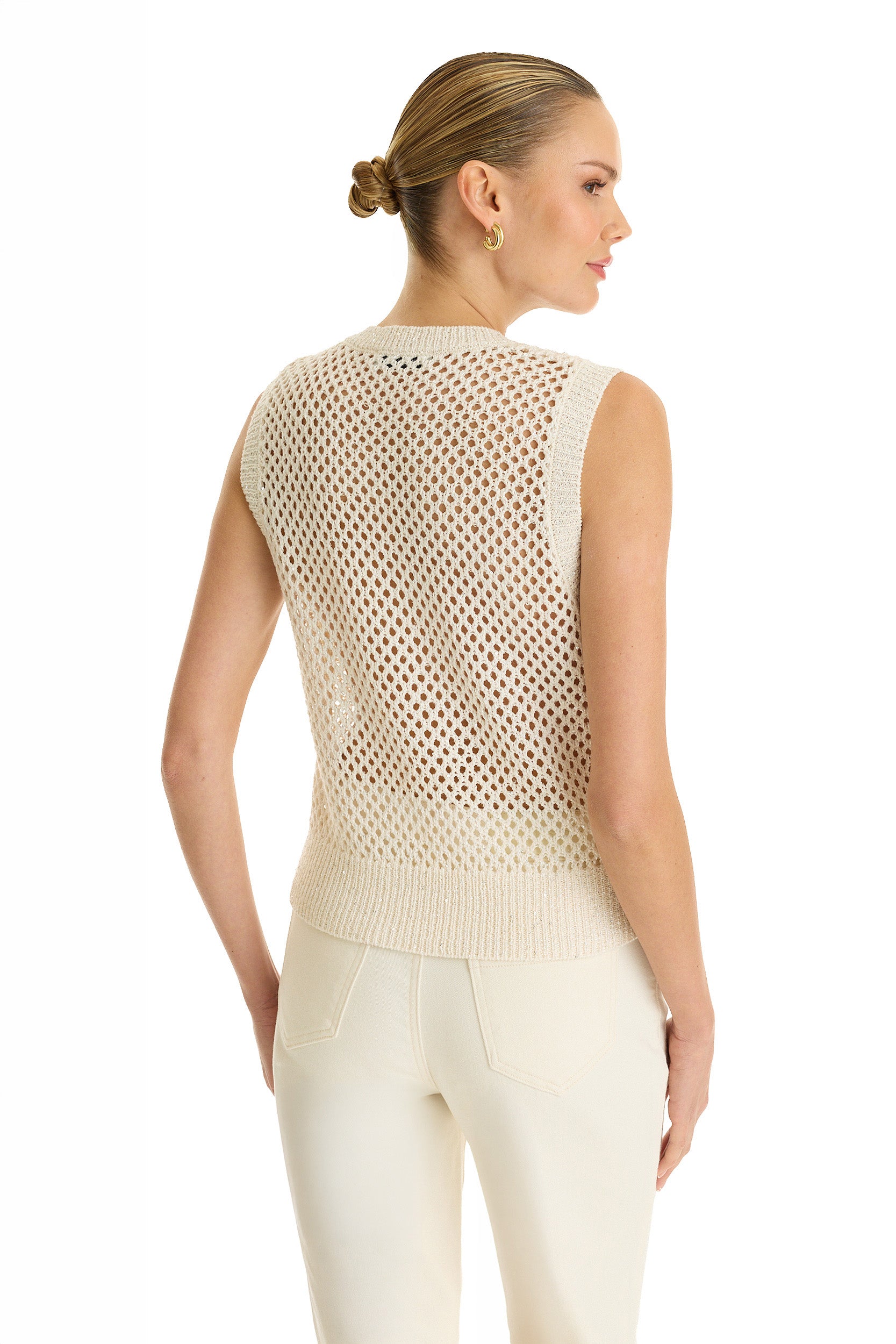 Addison Sequin Crochet Top - Pearl