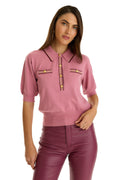The Bobbi Polo Shirt combines refined elegance with modern trend. Crafted from an ultra-soft knit that feels luxurious against the skin, this piece features distinctive mini embossed dome buttons for a polished finish. Designed with faux welt pockets and an elegant contrast trim, this top is perfect for elevated casual wear at brunch, shopping and beyond.