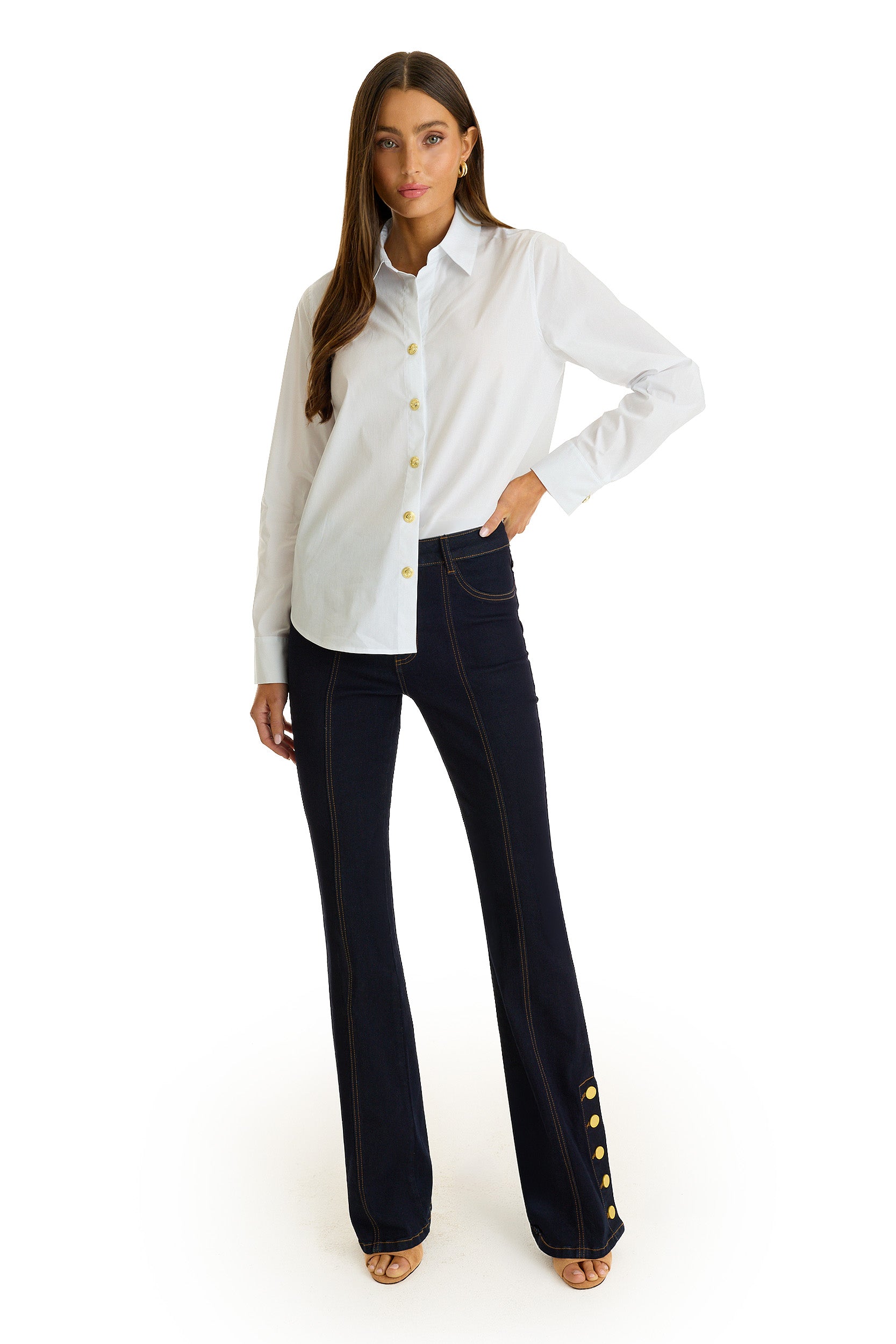The Jasmine Shirt is your new go-to for effortless style. Crafted from stretch poplin, this crisp white shirt features long sleeves, a flattering shirttail hem,... Read more