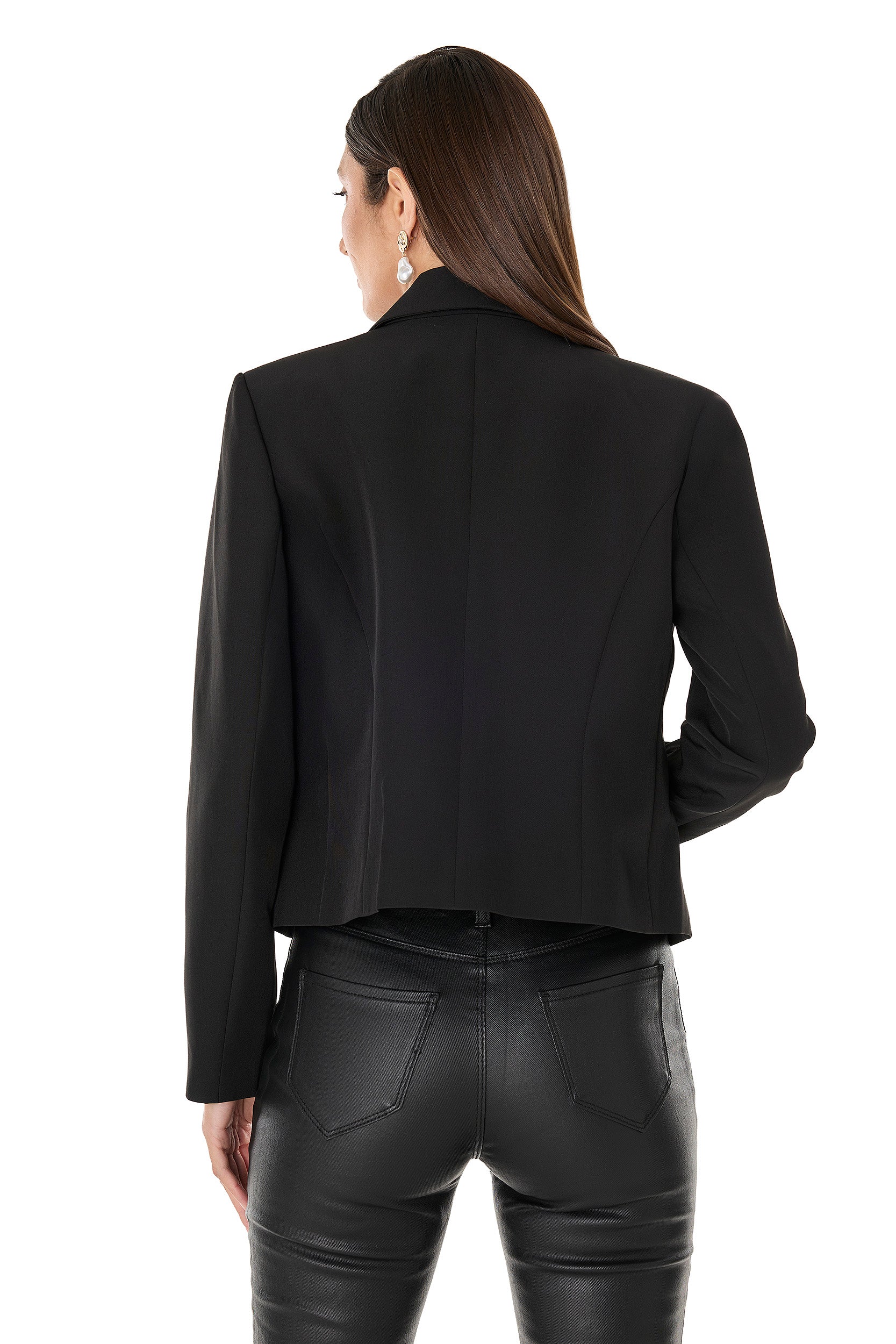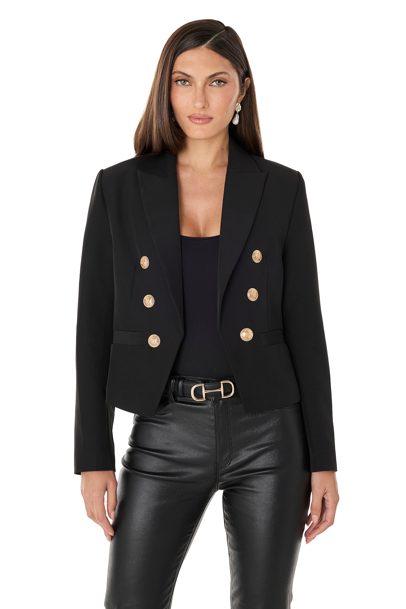 Perfectly polished and forward - the Gabrielle Blazer is a must-have season after season. This classic double-breasted style features a tailored waist to accentuate the figure, peaked lapels, and flap pockets. Fully lined and finished in luxurious suiting fabric, this style is finished with our signature embossed-dome buttons. Wear it with our coated jeans and a tee for an elegant everyday look or pair with a trouser for office-to-evening.