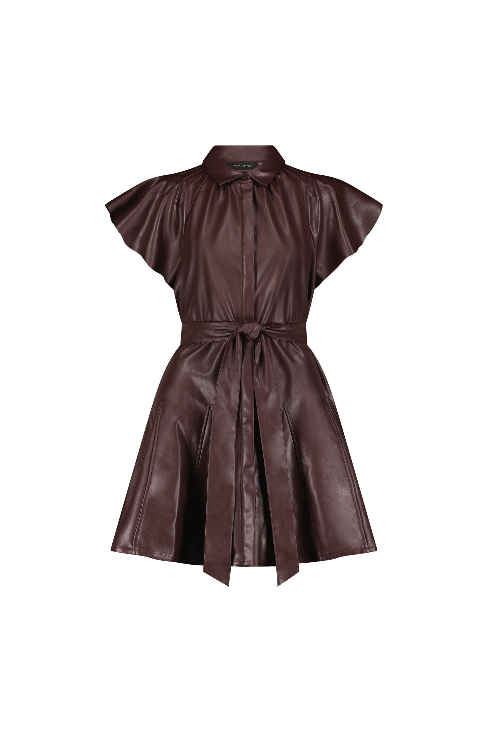 Devin Leather Ruffle Dress - Merlot