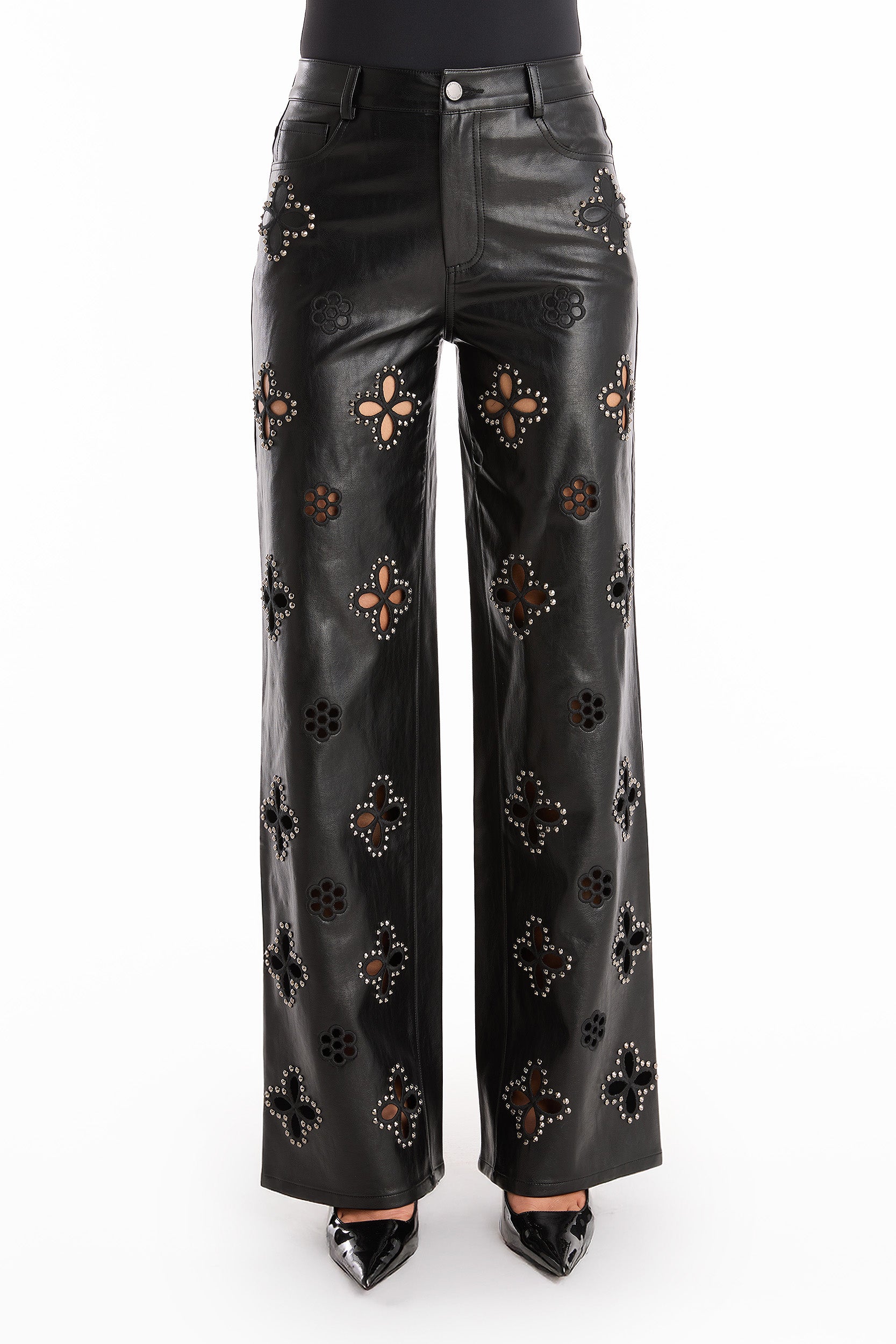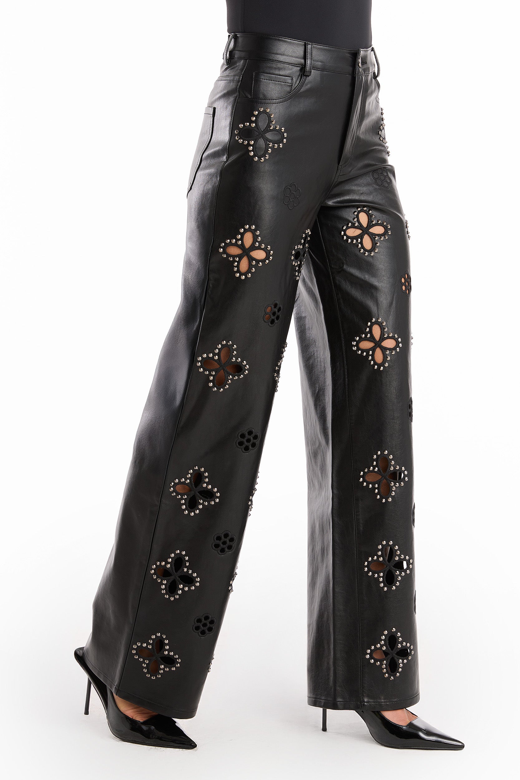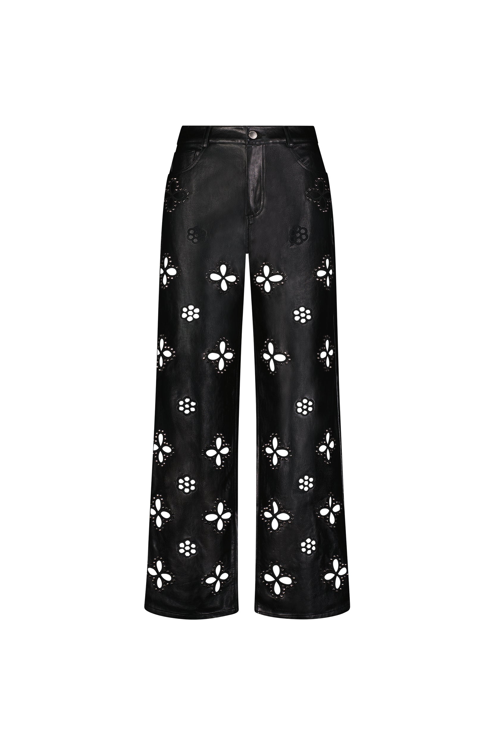 A brand-new Fall version of our best-selling Kaia Jean is now available in structured and luxurious leather. The Kaia is crafted from ultra-soft stretch faux leather fabric and finished with all-over floral stitching and silver studs — a blend of softness, structure, and standout detail. The high-rise, straight-leg silhouette flatters in all the right places while feeling effortlessly modern.
