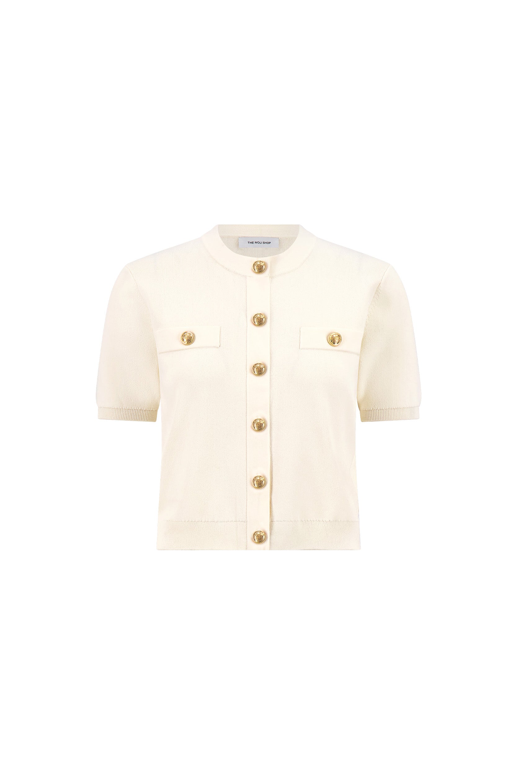 Timeless, elegant and chic - the Bonnie Knit Cardigan Top is the perfect crew-neck cardigan. Designed with a luxurious knit that's structured yet soft, this style features padded shoulders and gold Noli embossed dome buttons. Pair it with our signature denim for a polished every day look.