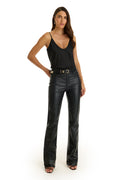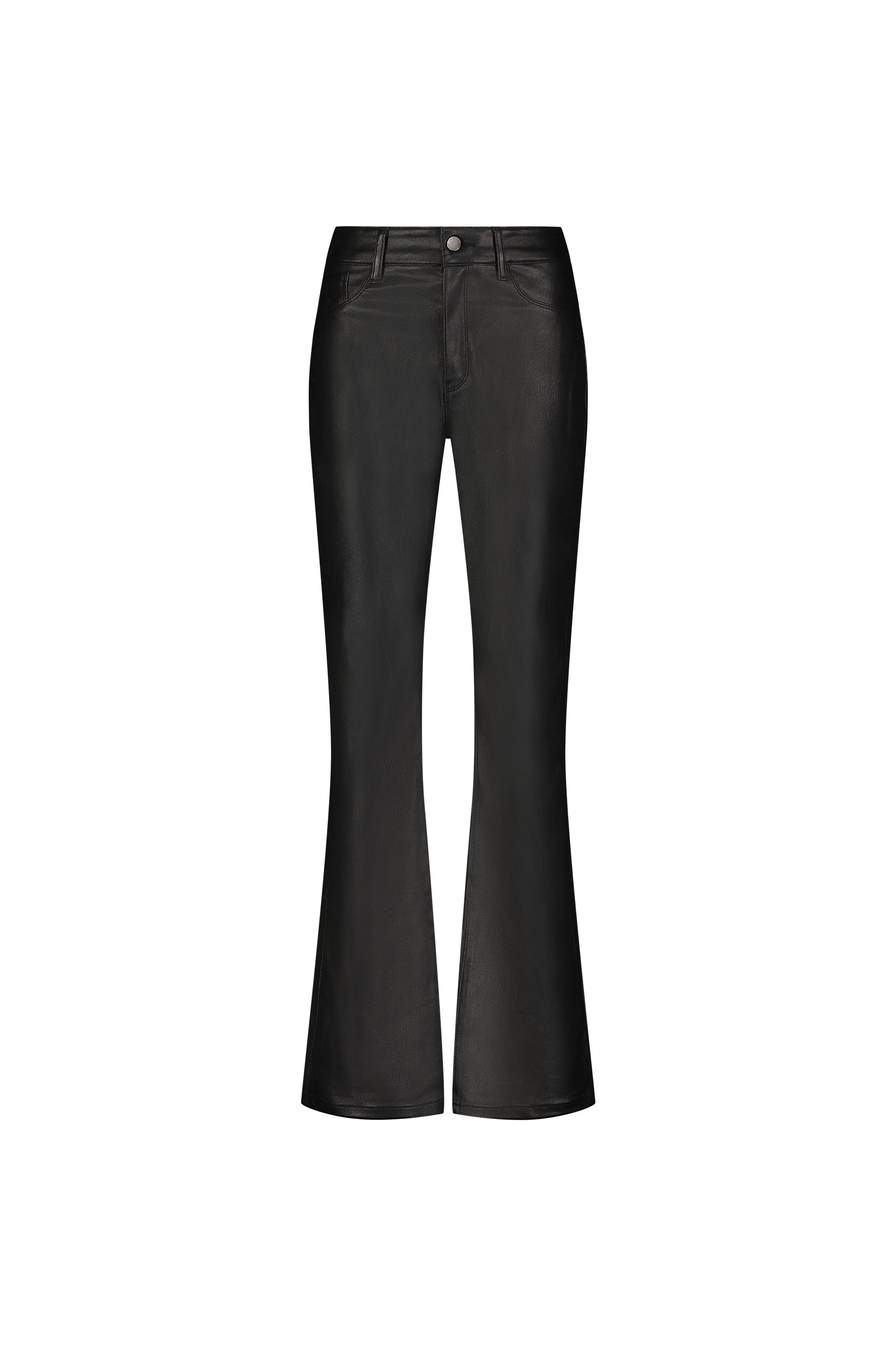 The most stunning pant of the season - meet the Aria Coated Jean. Designed with a sleek, slim bootcut and fitted through the hips and knee and flared at the hem. This denim fabric is comfortable yet structured with a leather-like look. Featuring a high-rise fit and tailored to pair with heels or flats, this piece is perfect from day to night.