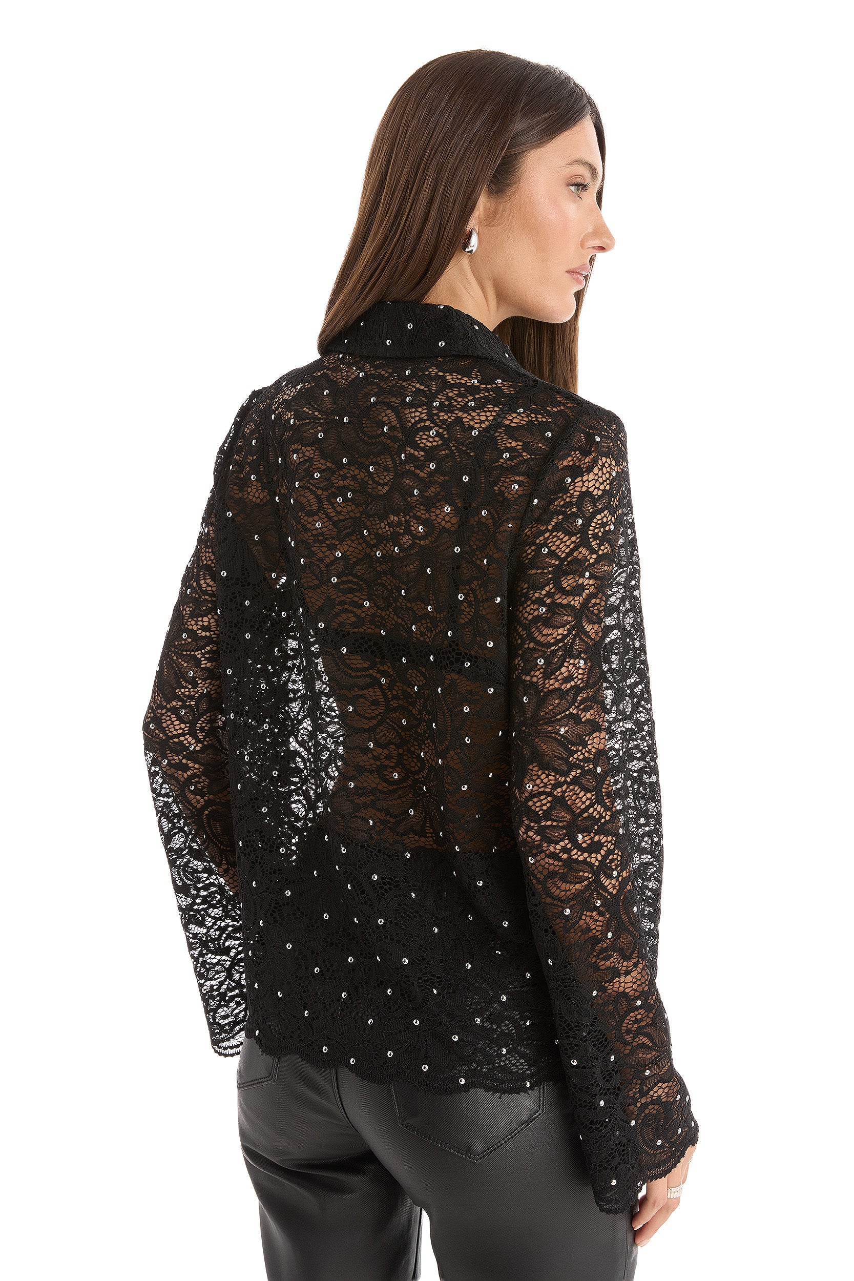 Sensual lace meets high-shine studded details for the ultimate feminine blouse. Cut in a slightly relaxed fit with romantic sleeves, this shirt is crafted from... Read more