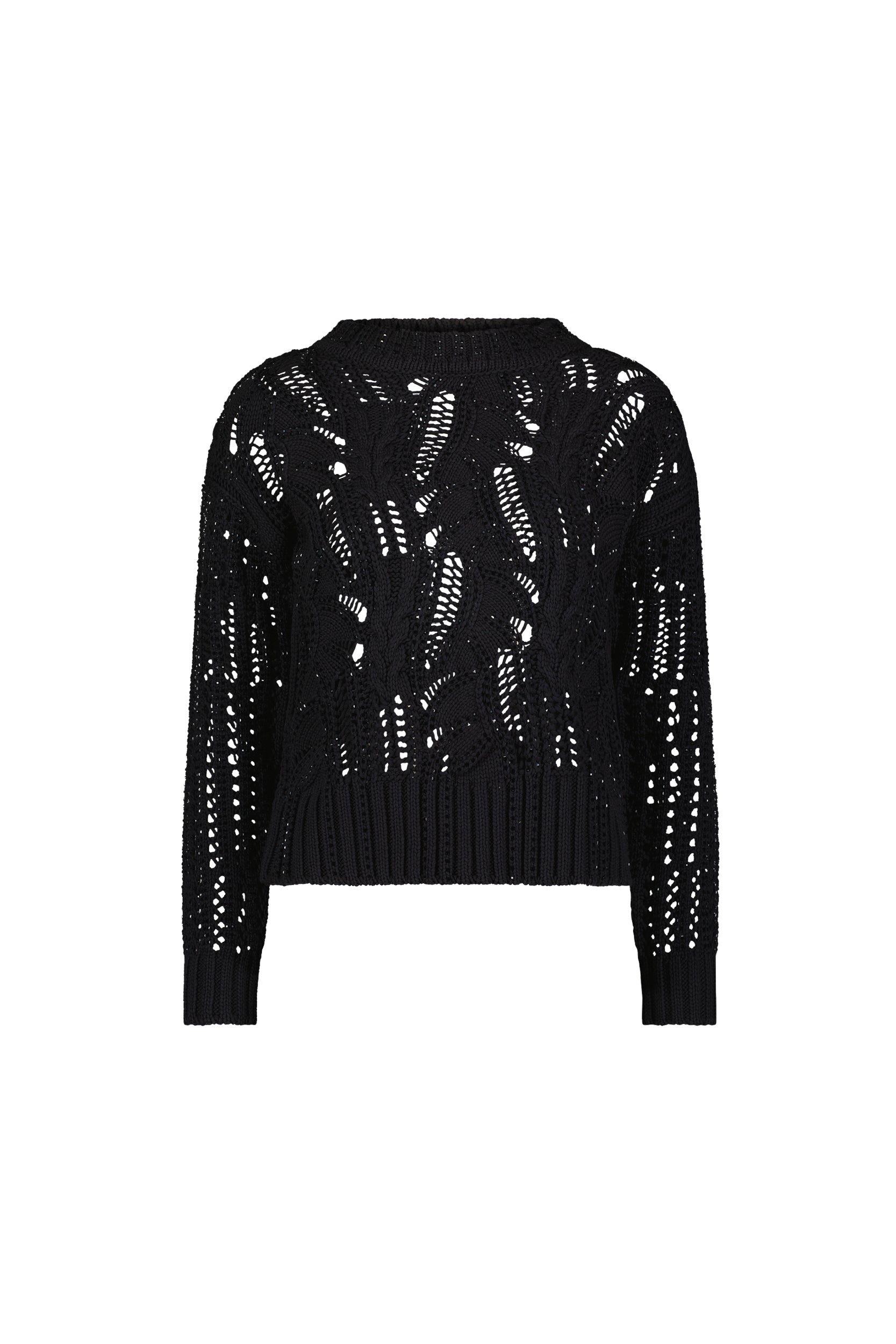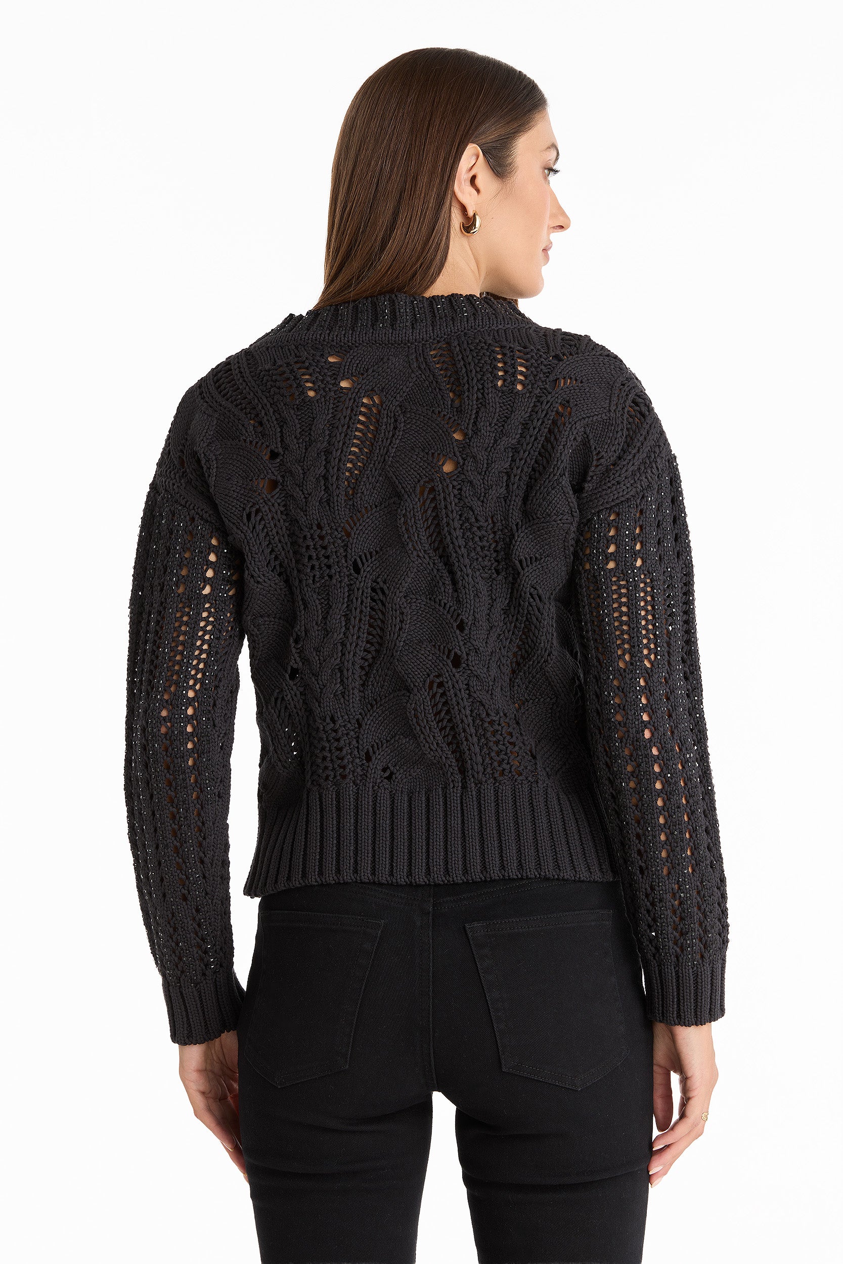 The Elea Crystal Knit Sweater brings out your inner shine in the most luxurious way. Featuring an intricate open knit design and adorned with sparkling crystal embellishments, this mid-length sweater with a classic crew neck adds a refined touch to your wardrobe, making it perfect for sophisticated layering and standout style.