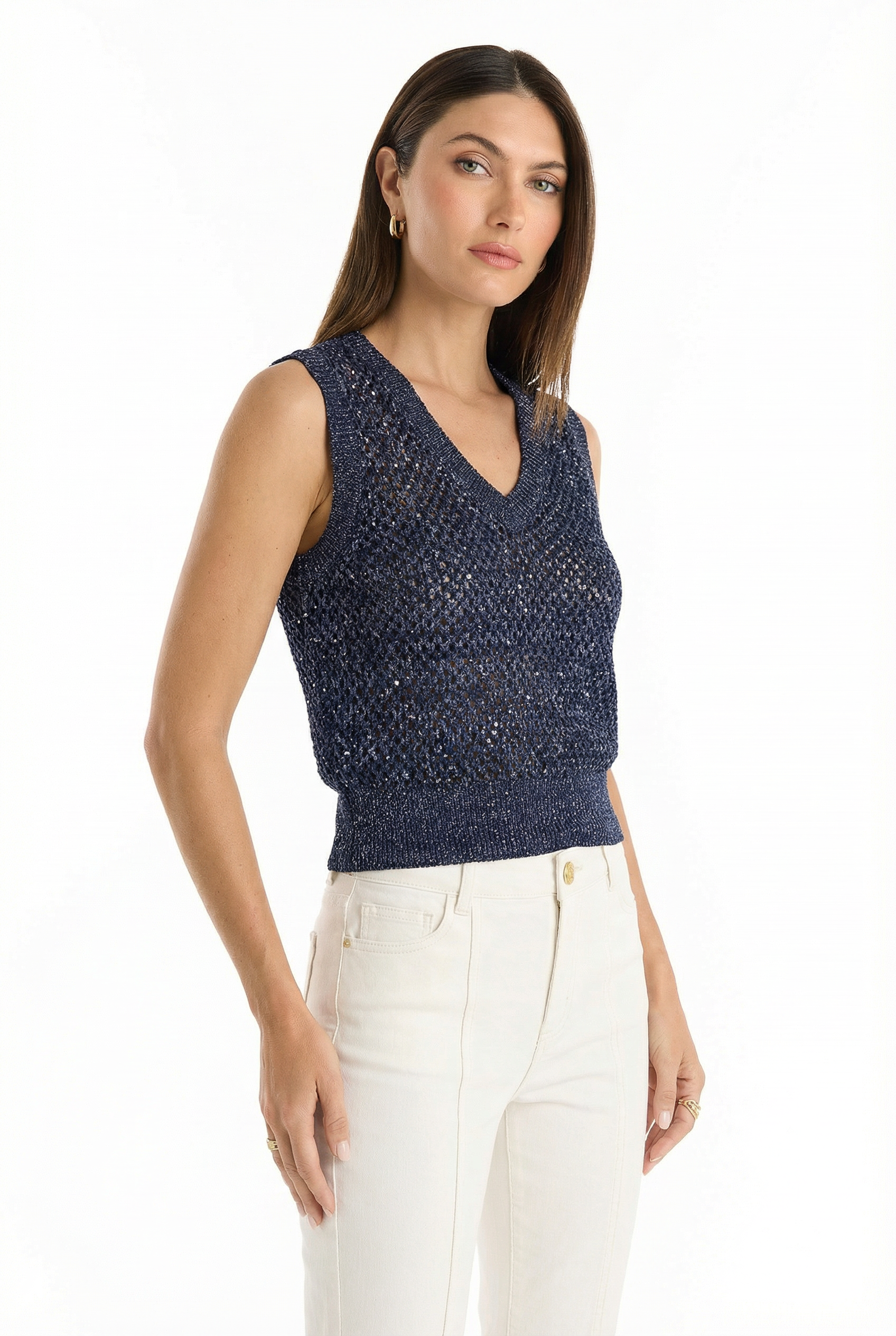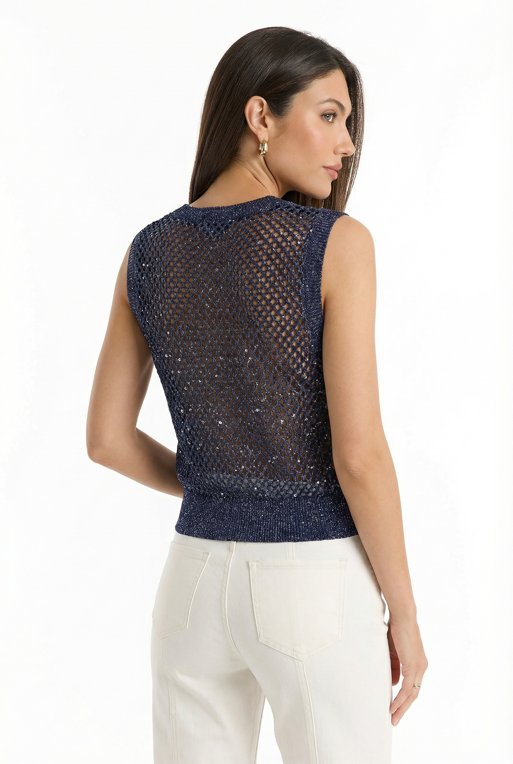 Addison Sequin Crochet Top - Navy
