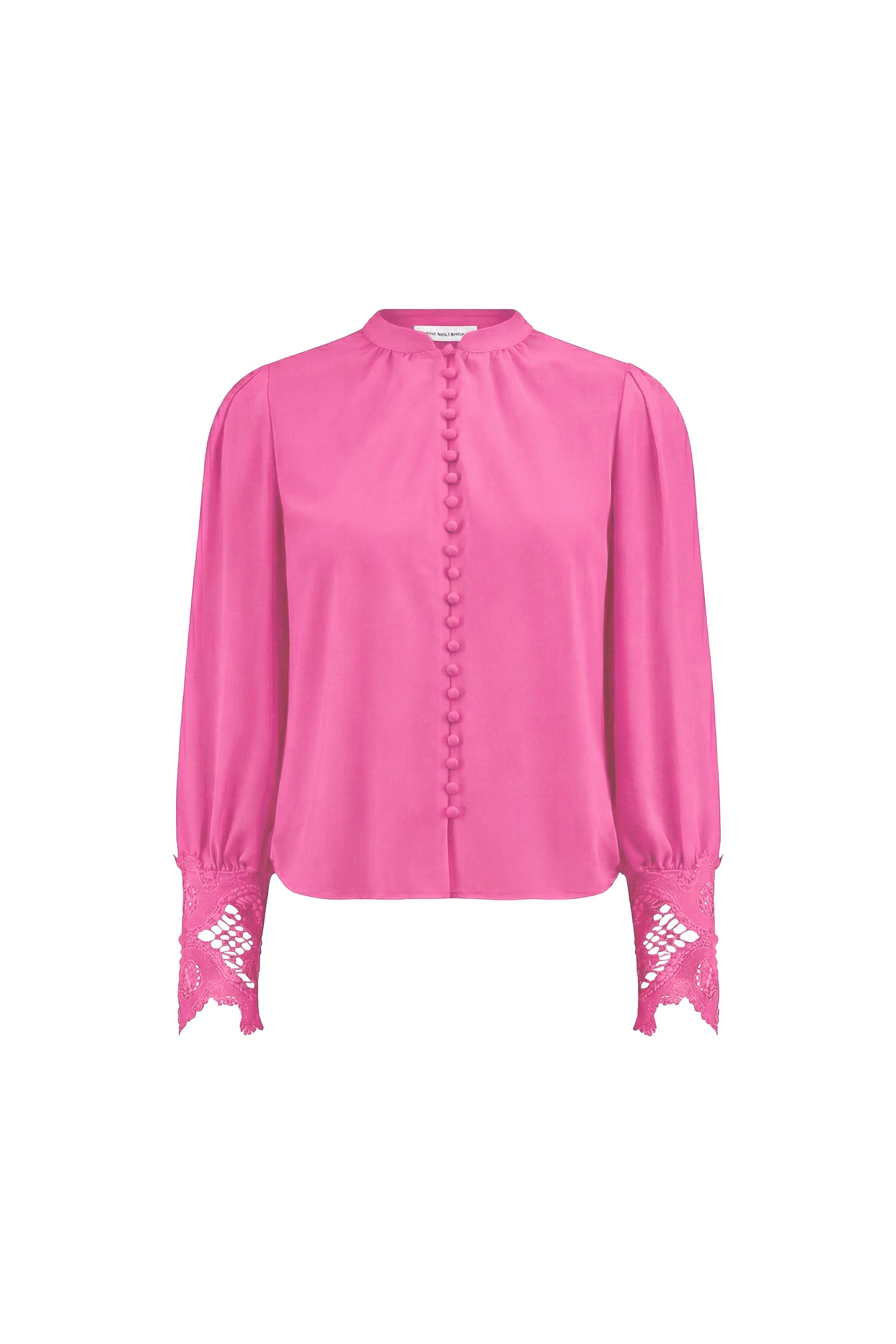 The Blake Lace Sleeve Blouse is your ticket to effortless elegance. This relaxed blouse features a charming high-low hem, delicate lace-trimmed cuffs, and pleated cap... Read more