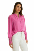 The Blake Lace Sleeve Blouse is your ticket to effortless elegance. This relaxed blouse features a charming high-low hem, delicate lace-trimmed cuffs, and pleated cap sleeves that add just the right amount of flair. A gathered band collar and self-button loop closure complete the look—dress it up or down with ease.