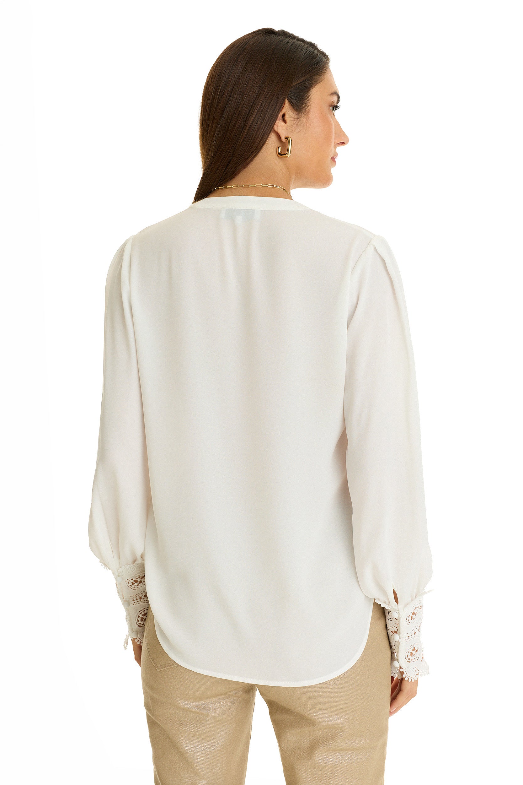 The Blake Lace Sleeve Blouse is your ticket to effortless elegance. This relaxed blouse features a charming high-low hem, delicate lace-trimmed cuffs, and pleated cap sleeves that add just the right amount of flair. A gathered band collar and self-button loop closure complete the look—dress it up or down with ease.