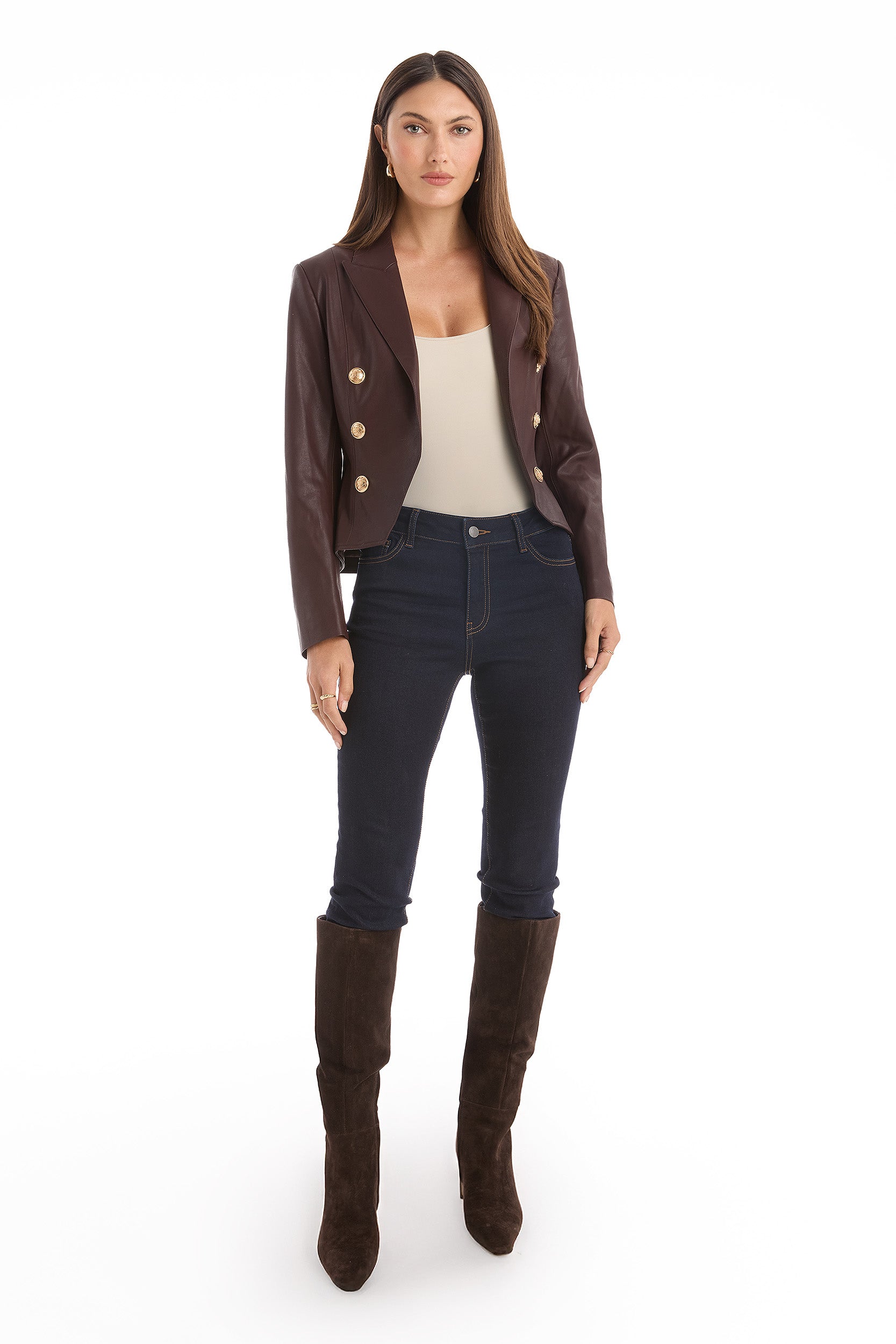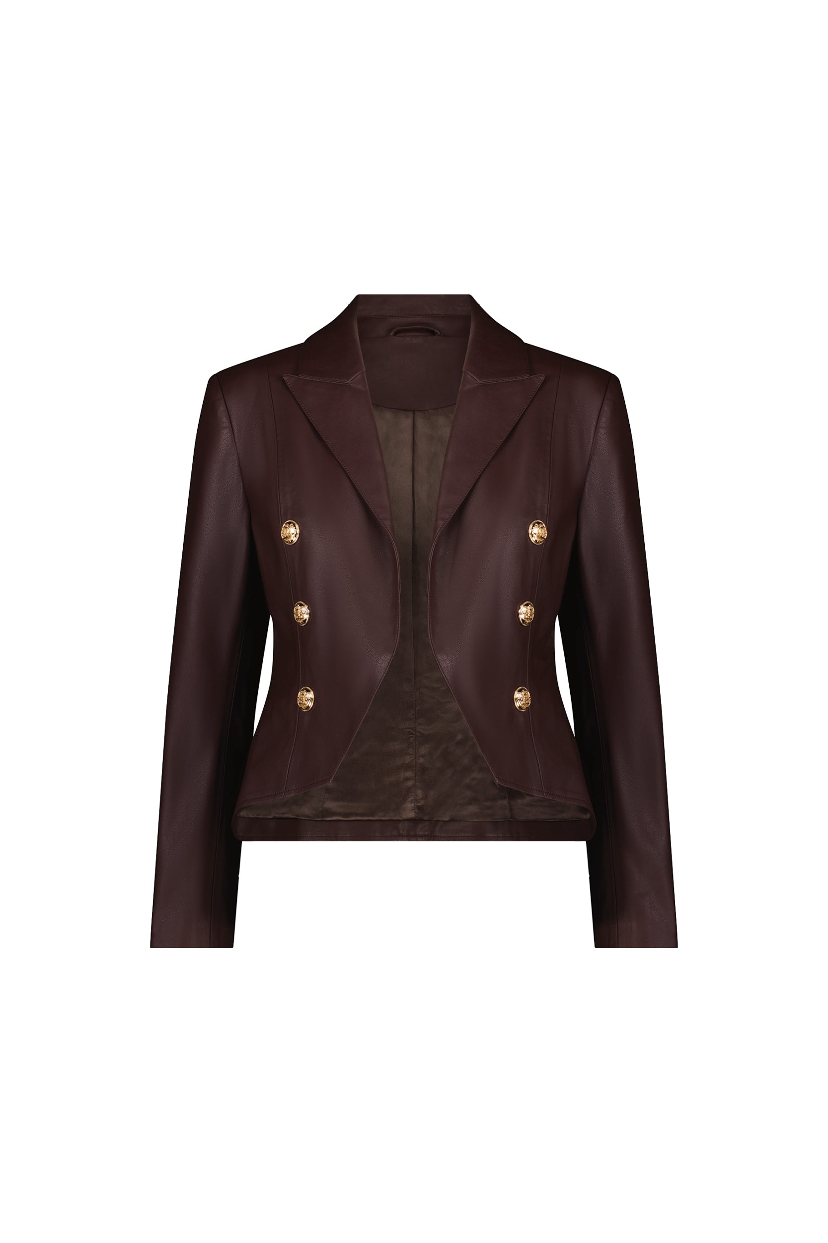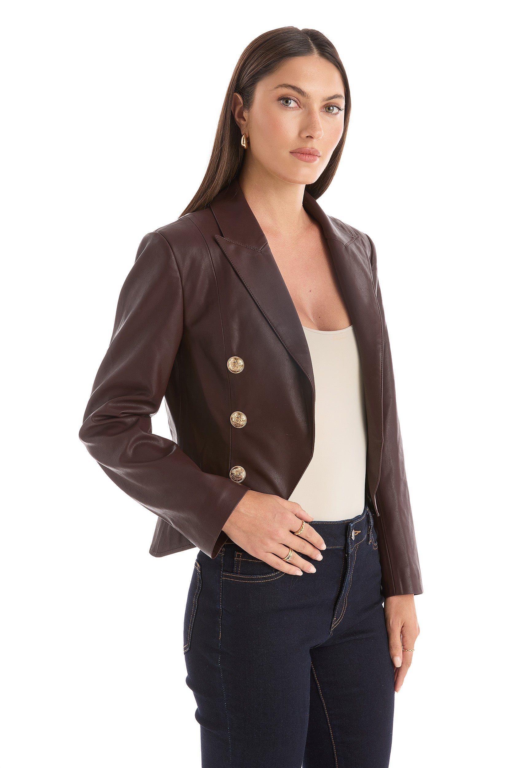 Gabrielle Leather Double Breasted Blazer - Espresso