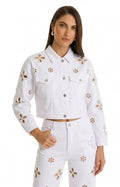 The Kaia Pearl Jacket is your denim jacket, reimagined. Lightweight and softly structured, this cropped silhouette is adorned with all-over pearl and floral beadwork — an effortlessly romantic layer with just the right amount of edge.