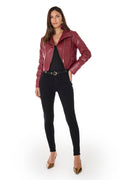 Polished yet effortless, The Katalina Moto Jacket combines timeless sophistication with edgy design. Featuring long sleeves with zipper cuffs, a sleek front zip closure, and snap closures at the lapels that add a refined touch. The asymmetrical silhouette creates a flattering shape, making this imported jacket a chic addition to any wardrobe.