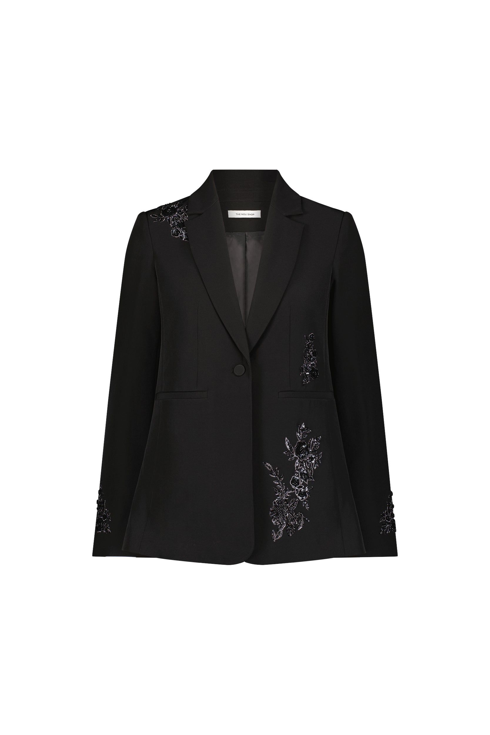 London Floral Sequin Blazer - Black
