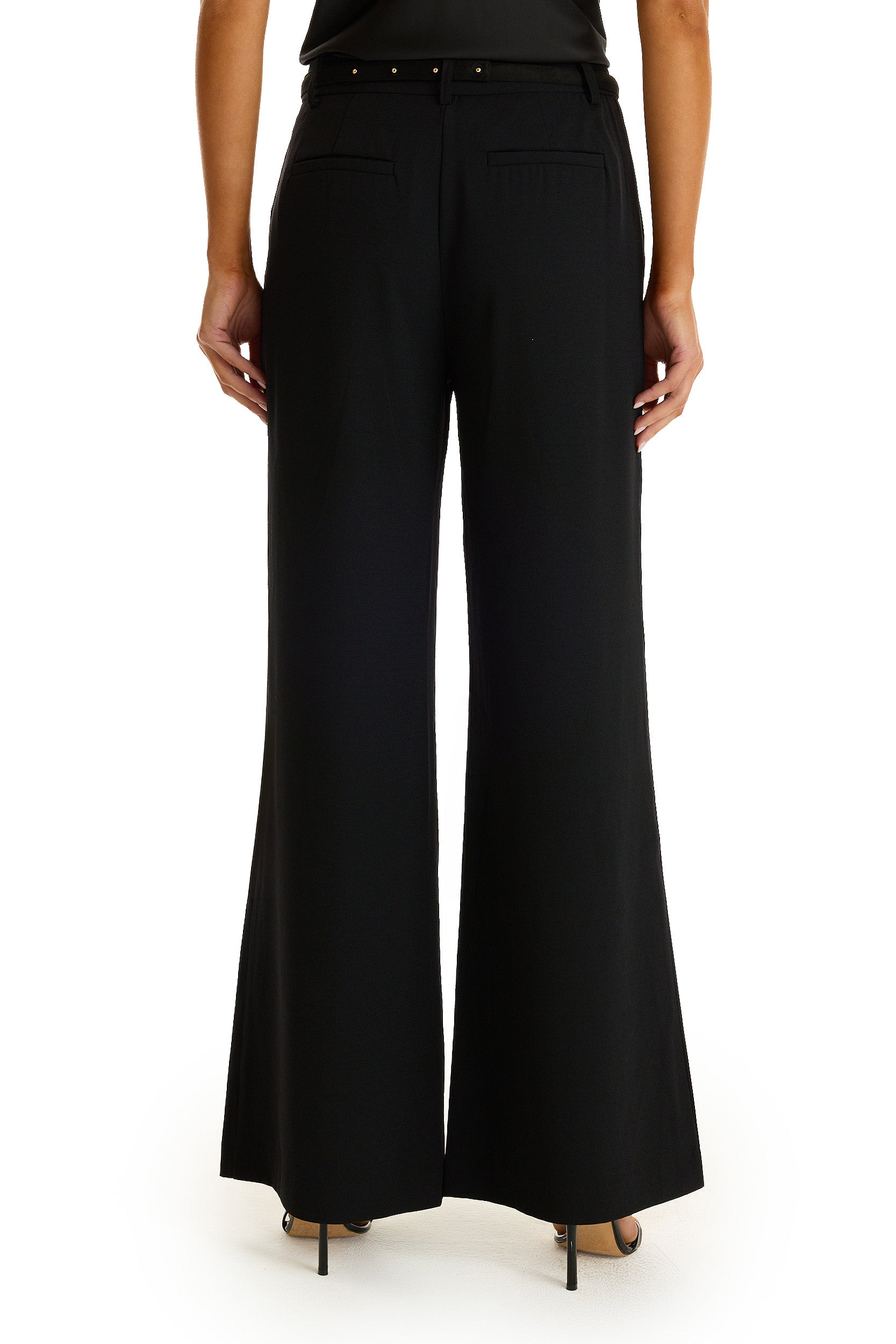 The ultimate wardrobe staple with a stunning built-in belt - meet the Martina Trouser. Designed with a soft and lightweight crepe, this piece is the perfect blend of sophistication and style. With a flattering and leg-elongating shape, you'll feel amazing wearing these from work to weekend. Features a high-rise, flare leg with a built-in adjustable sueded belt.