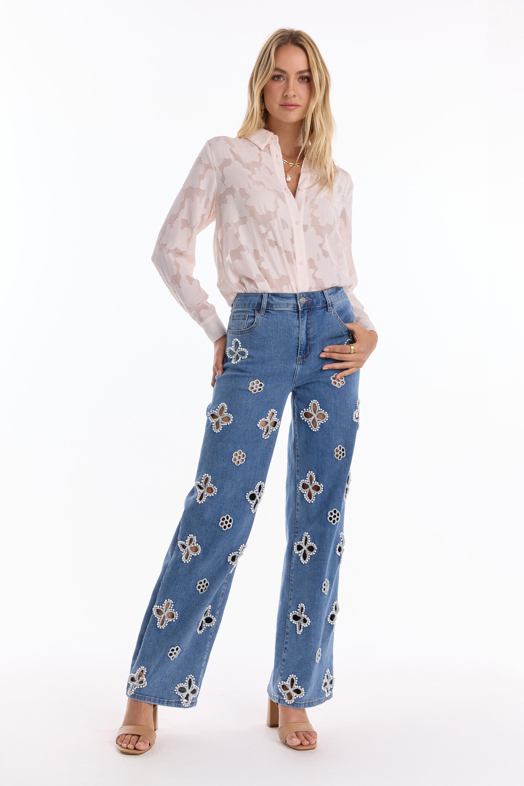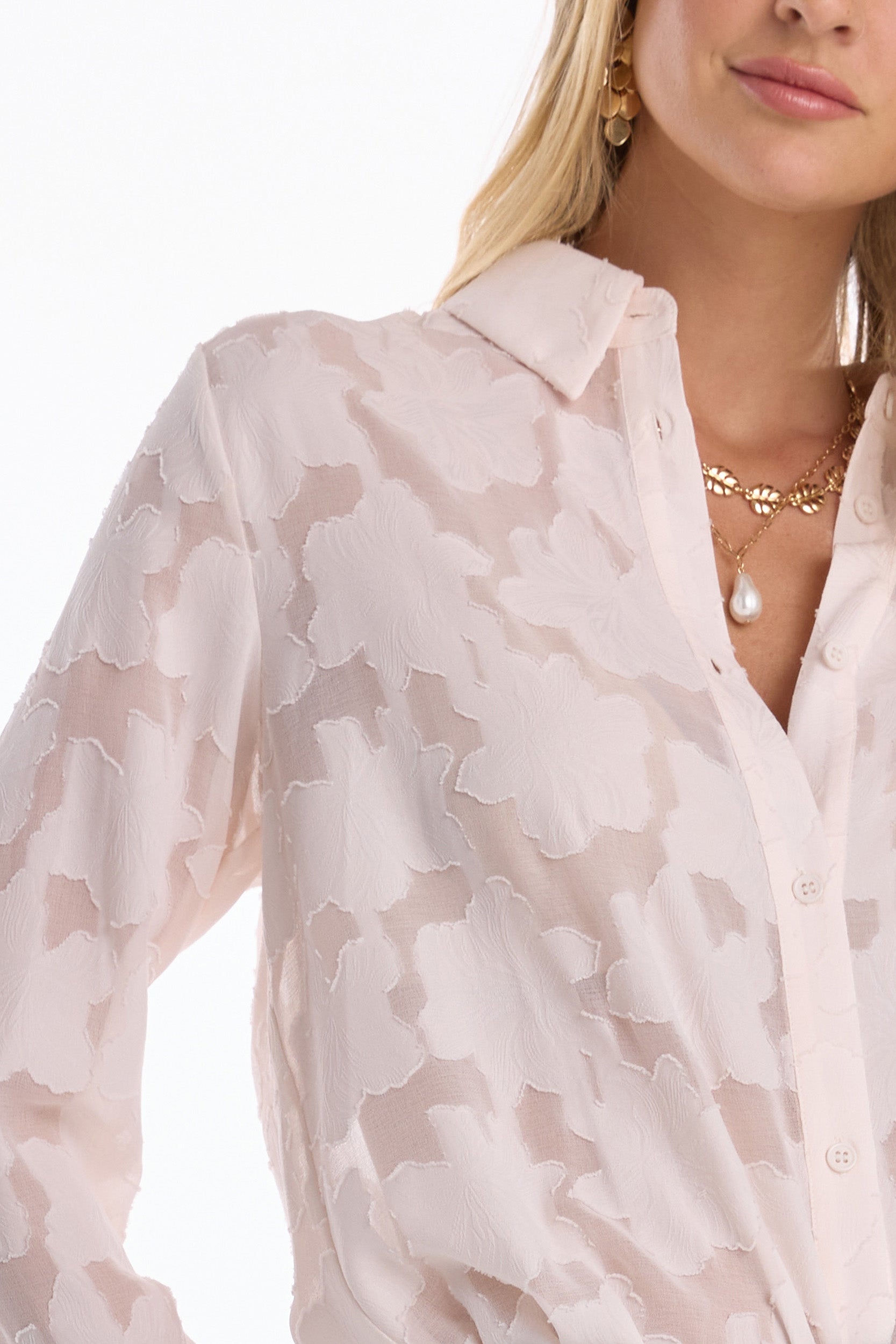 Our stunning Stelle Floral Lace Top is the ultimate dress-up, dress-down layering piece. Featuring a front button closure and lightweight lace, this button-up blouse is as versatile as it is sensual.